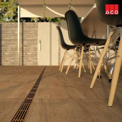 Das Aco Slimline Entwässerungsrinnen ist die Lösung zum Ablassen von Regenwasser. Diese Entwässerungssysteme können als separate Teile geliefert werden. Das Aco Slimline Entwässerungsrinnen System ist einfach zu installieren und zu warten. Die Systeme eignen sich ideal für Ihre Terrasse,Ihren Pool oder Ihre Auffahrt. Verarbeitung von Aco Slimline Entwässerungsrinnen System: Sie installieren die Entwässerung, indem Sie Ihre Terrasse oder Auffahrt leichtschräg installieren, dh “mit einer Neigung”. Tun Sie dies immer in Richtung Straße, Brunnen oder Grenze, aber niemals in Richtung Haus.