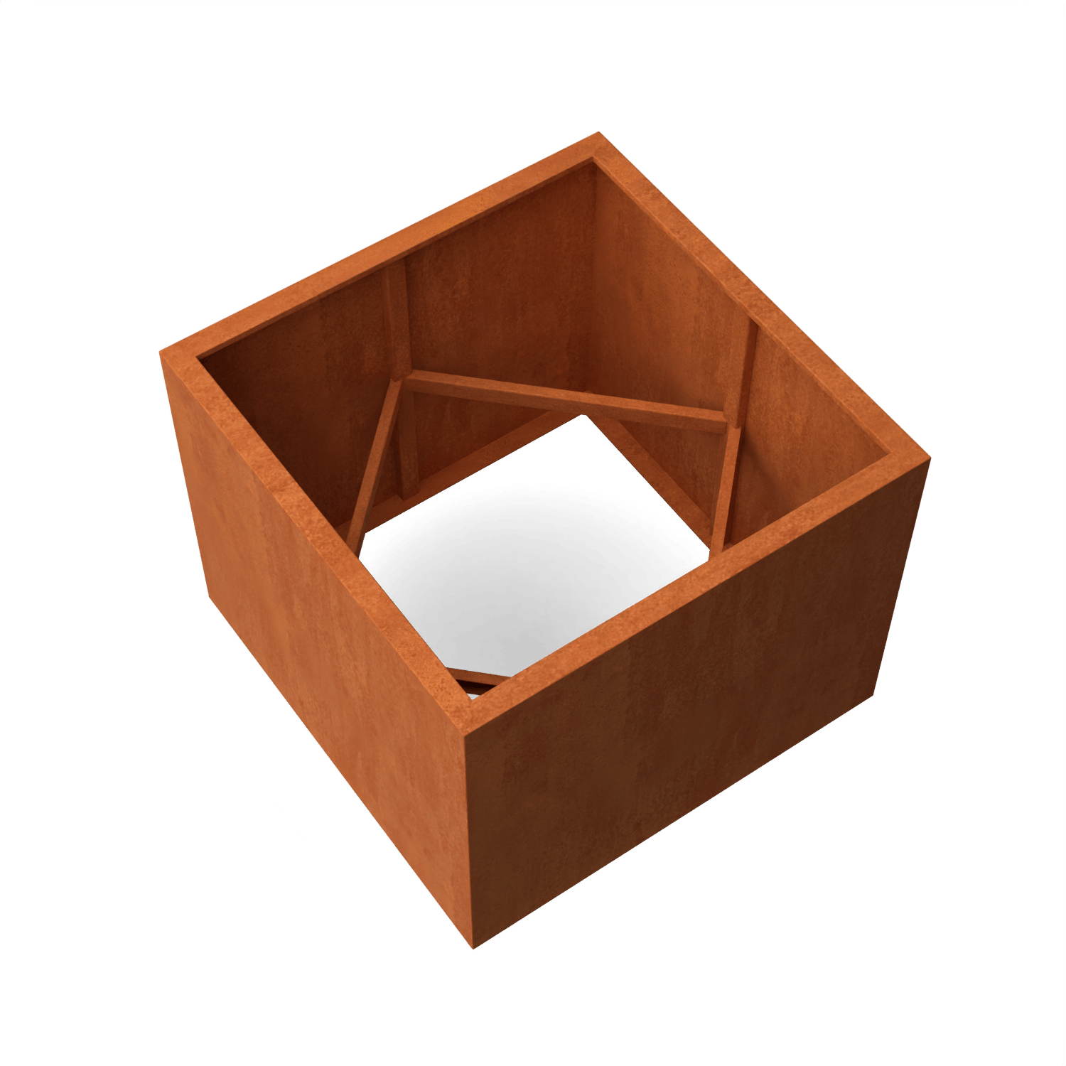Hochbeet Artesa Cortenstahl 1000x1000x800mm (LxBxH) – Materialstärke 2mm. Ohne Boden. Oberer Rand 50 mm gefaltet.