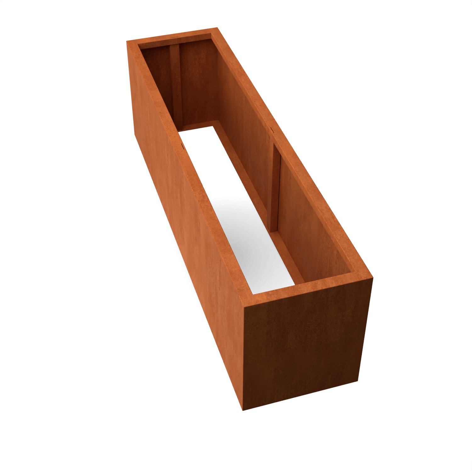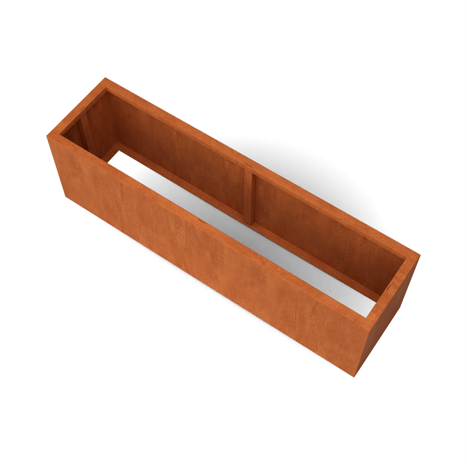 Hochbeet Artesa Cortenstahl 2000x500x600mm (LxBxH) – Materialstärke 2mm. Ohne Boden. Gefaltete Oberkante 50 mm.