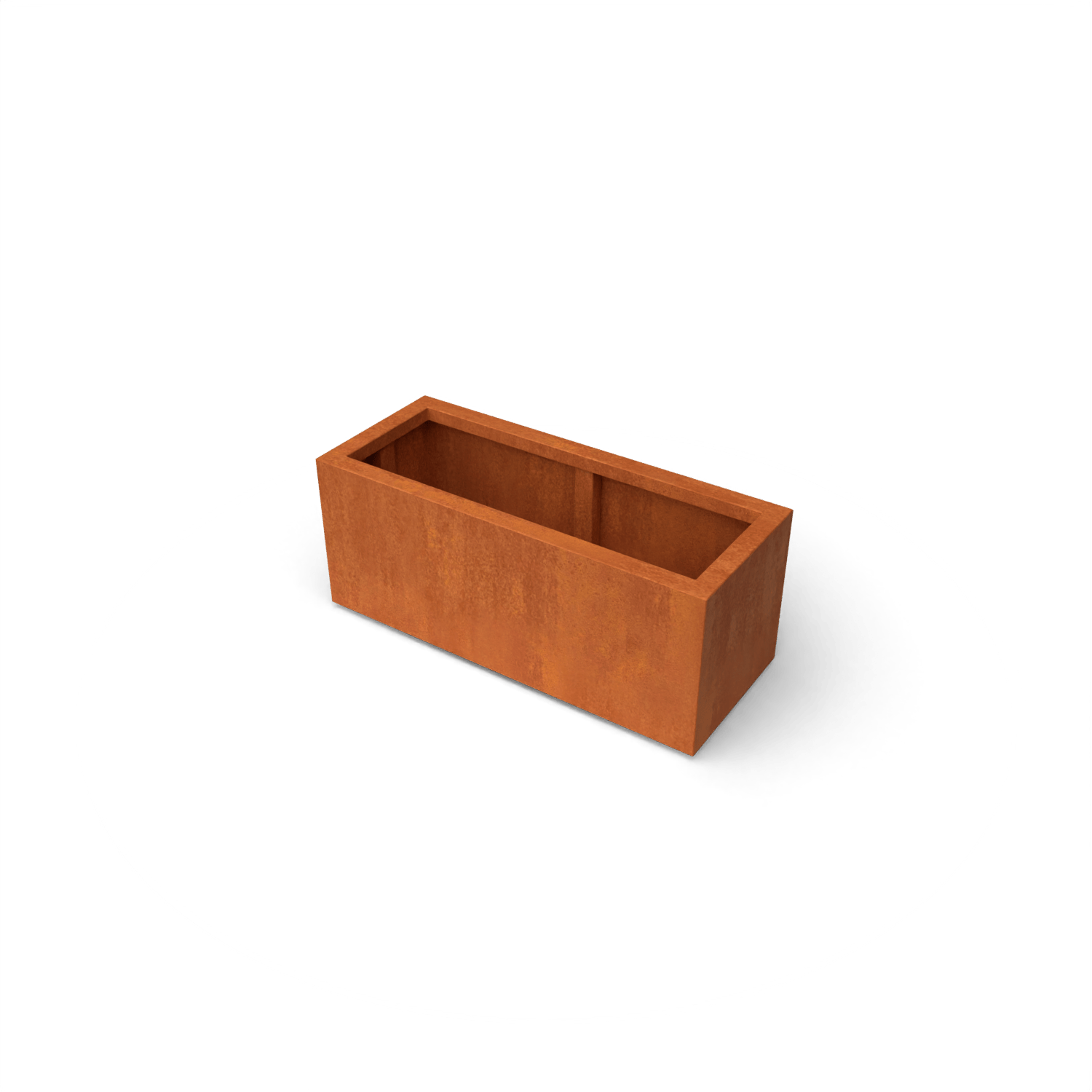 Pflanzgefäß Artesa Cortenstahl 1000x400x400mm (LxBxH) – Materialstärke 2mm. Ausgestattet mit Verstärkungsrohren auf der Innenseite. Ausgestattet mit einem Boden mit Entwässerungslöchern. Schenkel 15 mm hoch. Obere Kante 50 mm gefalzt.