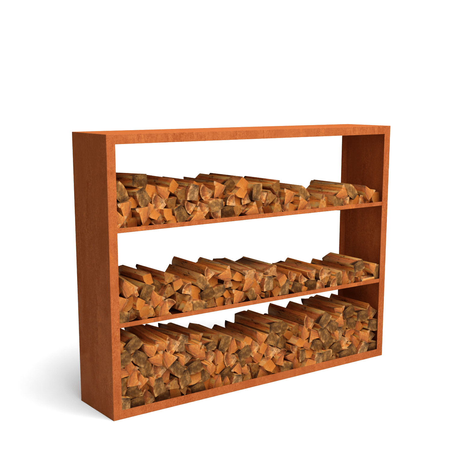 Egura Cortenstahl Holzlager – Unterteilung 3 Fächer – Länge: 2000 – Breite: 385 – Höhe: 1500