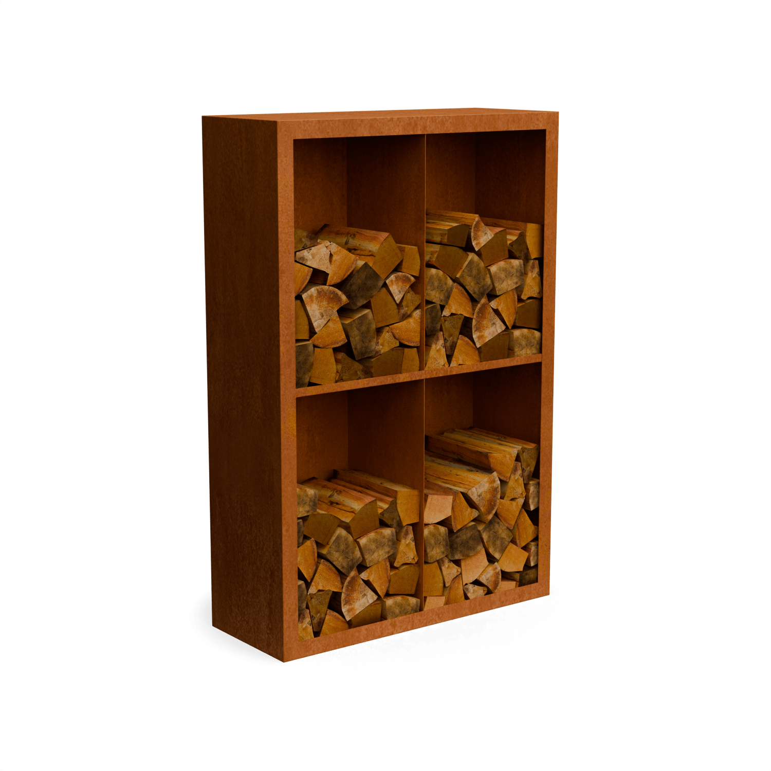 Egura Cortenstahl Holzlager – Unterteilung 4 Fächer mit rückenwand- Länge: 1000 – Breite: 385 – Höhe: 1500