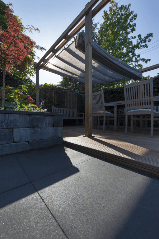 GeoStretto Plus unterstreicht den Raum. Eine moderne Terrassenplatte, die Gärten wachsen lässt. Kleine Gärten werden größer und große Gärten werden großartig. Das flache, moderne Design dieser Platte lässt jede Fläche größer denn je wirken. Die farbechte Deckschicht ist sehr leicht gestrahlt und klar. Dadurch entsteht eine sehr natürliche, leichte und schöne Oberflächenstruktur. Darüber hinaus ist GeoStretto Plus dank Footcomfort® äußerst angenehm für die Füße.